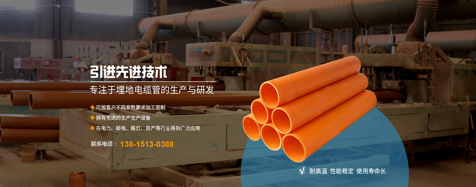 無(wú)錫邁力塑業(yè)科技有限公司地處長(zhǎng)江三角洲蘇錫常經(jīng)濟(jì)發(fā)達(dá)區(qū),坐落于江南名鎮(zhèn)--華士鎮(zhèn),緊鄰天下第一村“中國(guó)華西村”,緊靠沿江高速華西道口,距上海130公里、南京150公里,地理位置優(yōu)越,交通十分便捷。 本廠創(chuàng)辦于2010年,全廠職工總數(shù)為42名,工程師技術(shù)人員5名,擁有國(guó)內(nèi)先進(jìn)的錐形雙螺桿、單螺桿擠出生產(chǎn)線9條,是專(zhuān)業(yè)生產(chǎn)PE頂管、PVC-U埋地式普通電力電纜管套、PVC-C高壓電纜套管、MPP電纜套管等管材、管件、BWFRP電纜管拉擠纏繞管。 本廠研制生產(chǎn)的埋地電力通訊電...